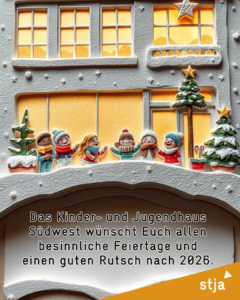 Das KJH Südwest ist offen für Kinder und Jugendliche ab 6 Jahren. Hier können sie ihre freie Zeit selbst bestimmt und ohne Eltern verbringen – mit kompetenter Betreuung, sicheren Rahmenbedingungen und viel Raum für Kreativität, Bewegung und Gemeinschaft.