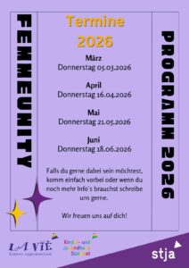 Kurzfristige Änderungen bitte der Instagram-Story entnehmen: lavie_queeres_jugendzentrum